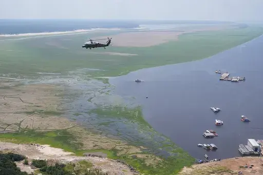 During a helicopter tour, Biden saw severe erosion, ships grounded in one of the Amazon River’s main tributaries and fire damage. He also passed over a wildlife refuge for endangered species of monkeys and birds and the expansive waters where the Negro River tributary flows into the Amazon. He was joined by Carlos Nobre, a Nobel Prize-winning scientist and expert on how climate change is harming the Amazon.