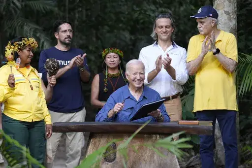 Biden met Indigenous leaders — introducing his daughter and granddaughter — and visited a museum at the gateway to the Amazon where Indigenous women shook maracas as apart of a welcoming ceremony. He then signed a U.S. proclamation designating Nov. 17 as International Conservation Day.