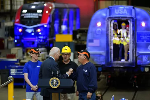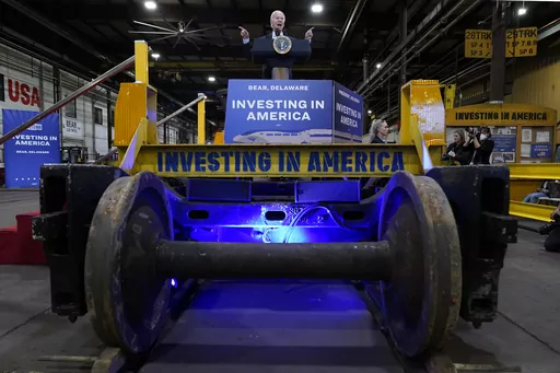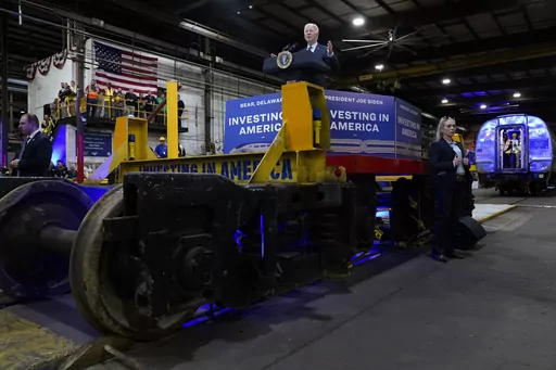 BEAR, Del. (AP) — President Joe Biden, arguably the nation's biggest Amtrak fan, visited a train maintenance shop in his home state of Delaware on Monday to showcase more than $16 billion in federal investments for rail travel along the busy Northeast Corridor, saying of long-delayed improvements, “we're finally getting it done.”