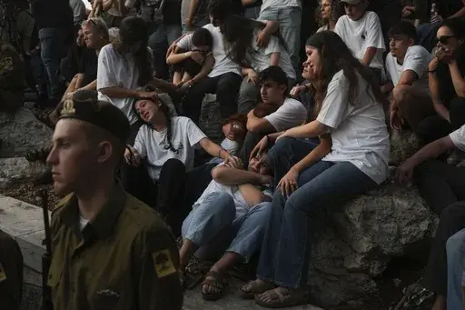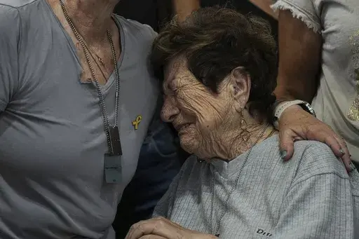 An Israeli woman grieves, the deep lines of wrinkles stark as she thinks of a man killed in Hamas’ Oct. 7, 2023, attack on Israel whose body the militants spirited away into the Gaza Strip.