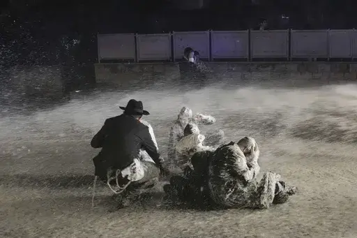 Then there was for many the year’s biggest surprise in December. After more than 50 years of rule, the Assad family of Syria lost control of the country in the face of a lightning rebel advance. One AP photo showed a painting of deposed President Bashar Assad’s father, Hafez, lay mutilated in one hall of power. Rebels waved their assault rifles above their head in a street in Damascus in another, a moment captured as they raced by on a motorbike.
