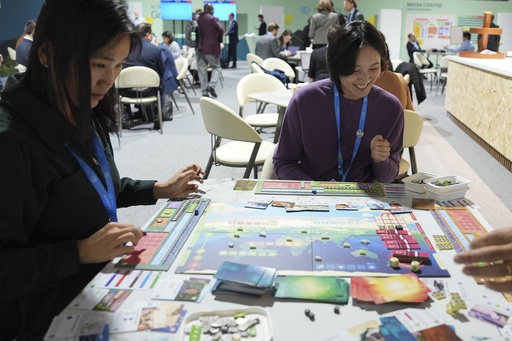 The Associated Press brought the board game Daybreak to the United Nations climate negotiations in Baku, Azerbaijan. Experts from three countries were asked to play the game, which involves players working together to curb climate change, caused by the release of greenhouse gas emissions when fuels like gasoline, natural gas and coal are burned. The goal of the game is to prevent the world from getting too hot or overrun by devastating extreme weather events.