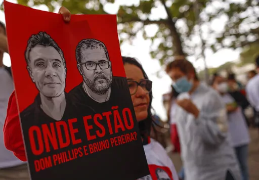 Pereira, 41, and Phillips, 57, were last seen June 5 near the entrance of the Indigenous territory, which borders Peru and Colombia. They were returning alone by boat on the Itaquai river to Atalaia do Norte but never arrived.