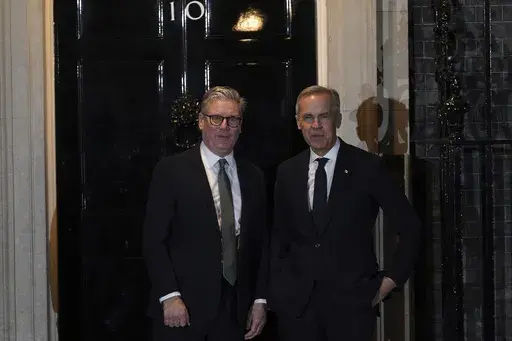 “The relationship between our two countries has always been strong," Starmer told Carney inside the British leader's 10 Downing St. residence. “Two sovereign allies, so much in common — a shared history, shared values, shared king.”