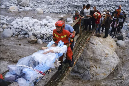 State broadcaster CCTV showed rescue crews pulling a woman who appeared uninjured from a collapsed home in Moxi, where many of the buildings are constructed from wood and brick. Around 150 people were reported with varying degrees of injuries.