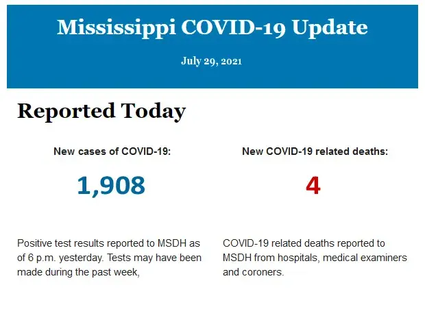 Listed below is the daily COVID-19 update for the state of Mississippi.