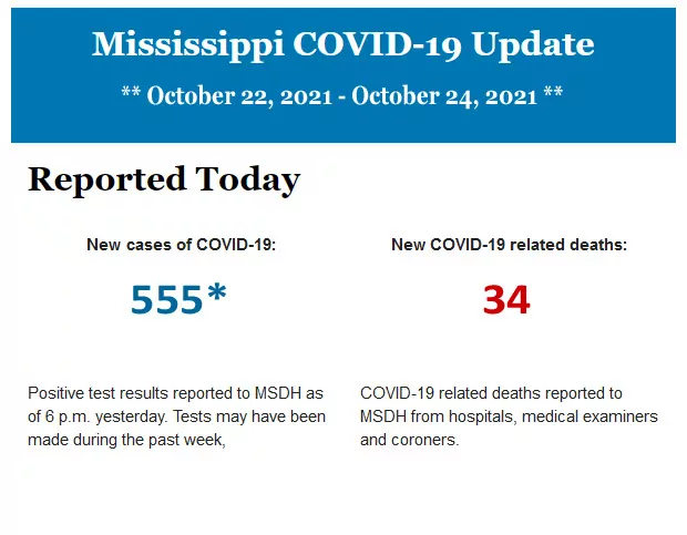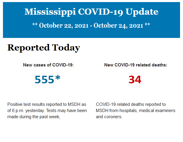 Listed below is the daily COVID-19 update for the state of Mississippi.