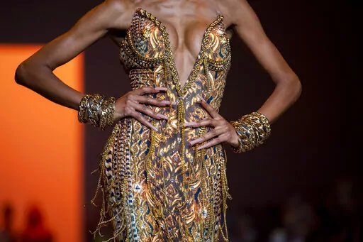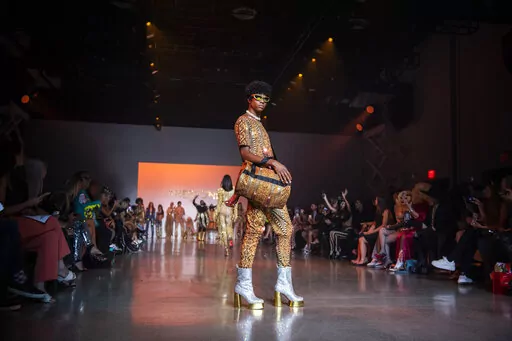 Models twirled down the runway and struck seductive poses to the thumping beats. Rapper Saucy Santana vogued and twerked while performing some of his TikTok hits including “Material Girl.”