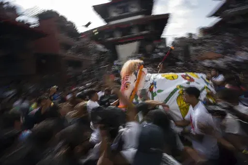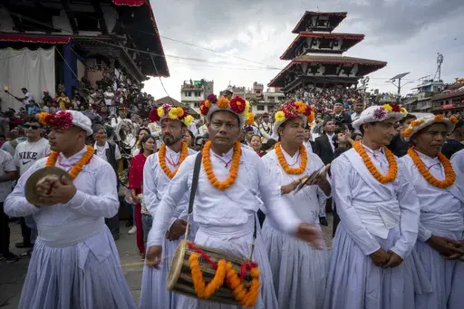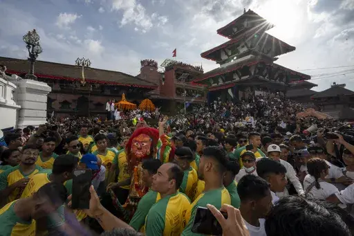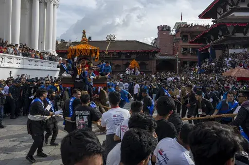 KATHMANDU, Nepal (AP) — Nepal’s monthslong festival season began on Tuesday with tens of thousands of devotees pulling a wooden chariot with a young girl revered as a living goddess.