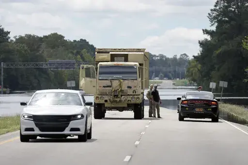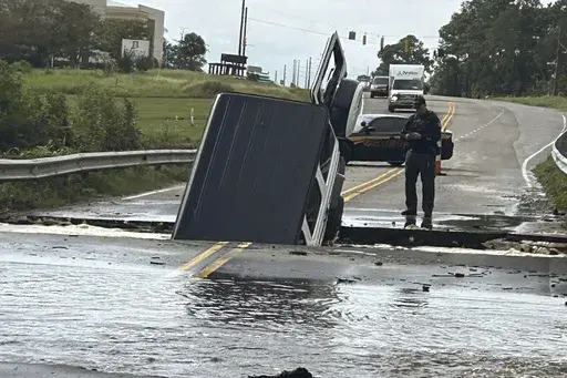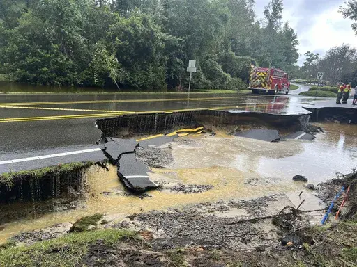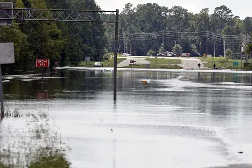The flash flooding closed dozens of roads in Brunswick County at North Carolina's southeast tip, including U.S. Highway 17, which is the main coastal route. Floodwaters swamped the highway at several points for most of the day, trapping some drivers on high ground that became an island.
