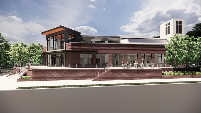 “We began designing a place we refer to as the central plaza so we could welcome everyone in a main entrance and provide a café space and a counseling space and make updates to the restrooms and the broadcast and security office,” Cowan said.