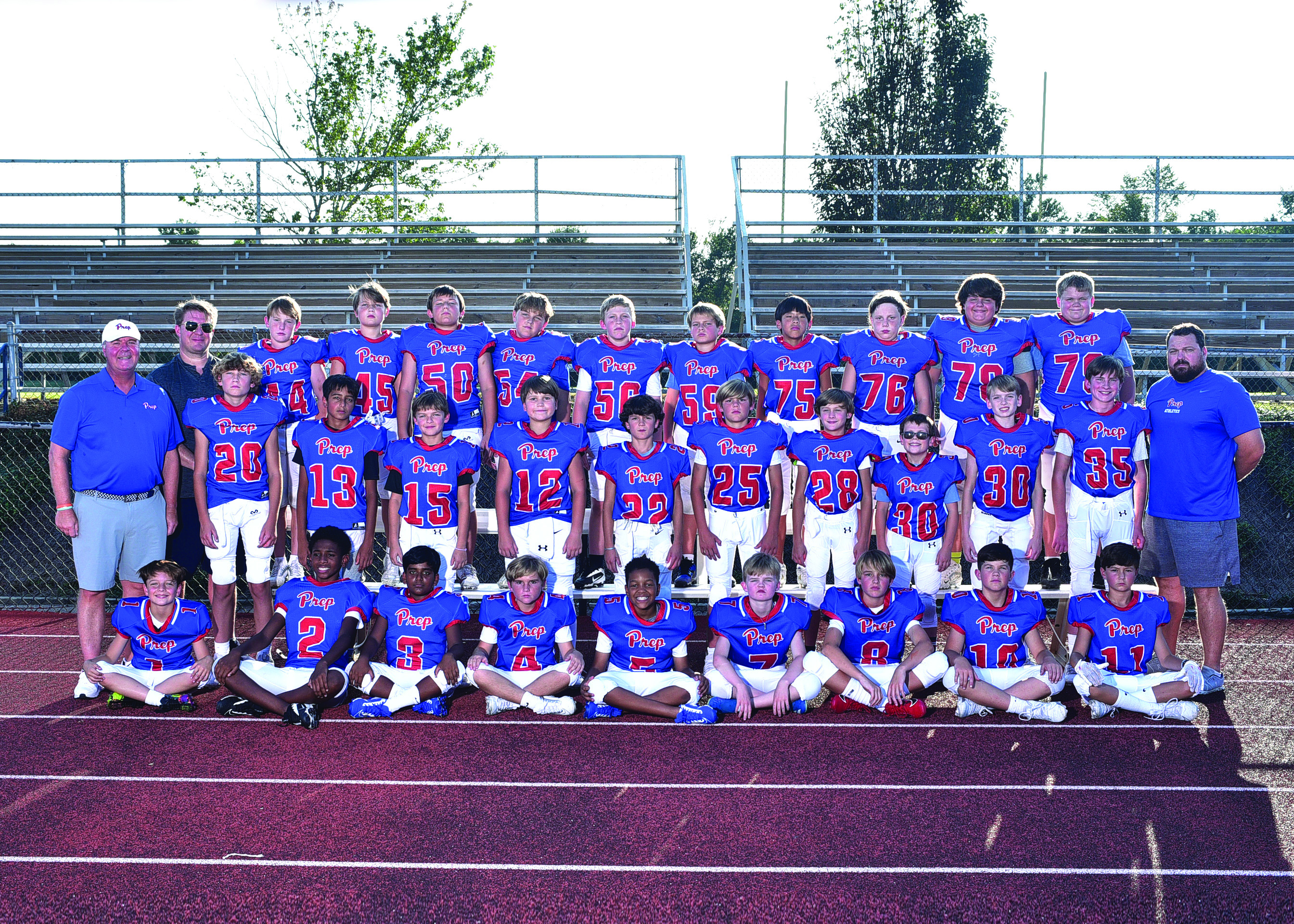 The Jackson Prep fourth through sixth grade football team for 2024 includes (from left, back) Coach Chris Kimmel, Hank Walker, Dixon Clark, Matthew Oswalt, Joshua Sinclair, Liam Kneip, T. Mark Sledge, Samuel Warf, Hayes Ezell, Mason Taylor, Walker Teague; (middle row) Coach John Andrew Griffin, Clay McCain, Gorav Kaura, Baron Vance, Bo Germany, Walt Mardis, Aiden Cannada, Skip…