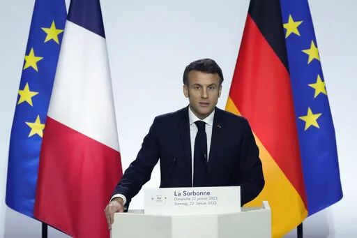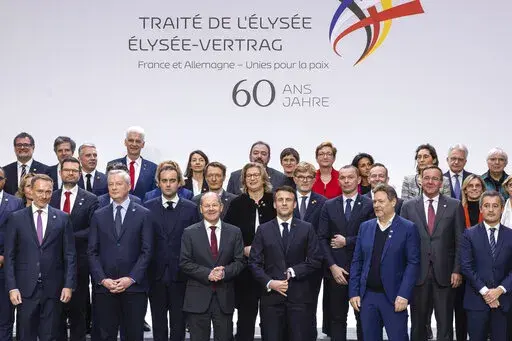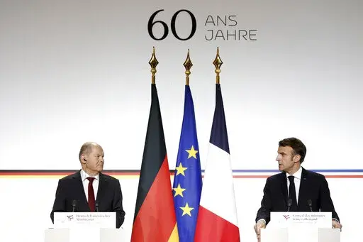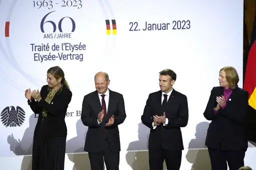 PARIS (AP) — France and Germany committed Sunday to giving Ukraine “unwavering support” and to strengthening the European Union as they sought to overcome differences over defense, energy and economic issues on the 60th anniversary of their post-World War II friendship treaty.