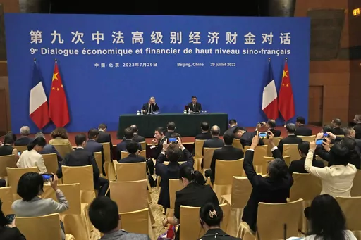 The talks were overshadowed by Russia's war against Ukraine and complaints China might be helping Moscow evade Western sanctions, but Le Maire said he didn't discuss the war with Chinese officials. However, he said it was in Beijing’s interest to end the 17-month-old war. President Emmanuel Macron’s security adviser, Emmanuel Bonne, said this month China was delivering “military equipment” to Russia but gave no details.