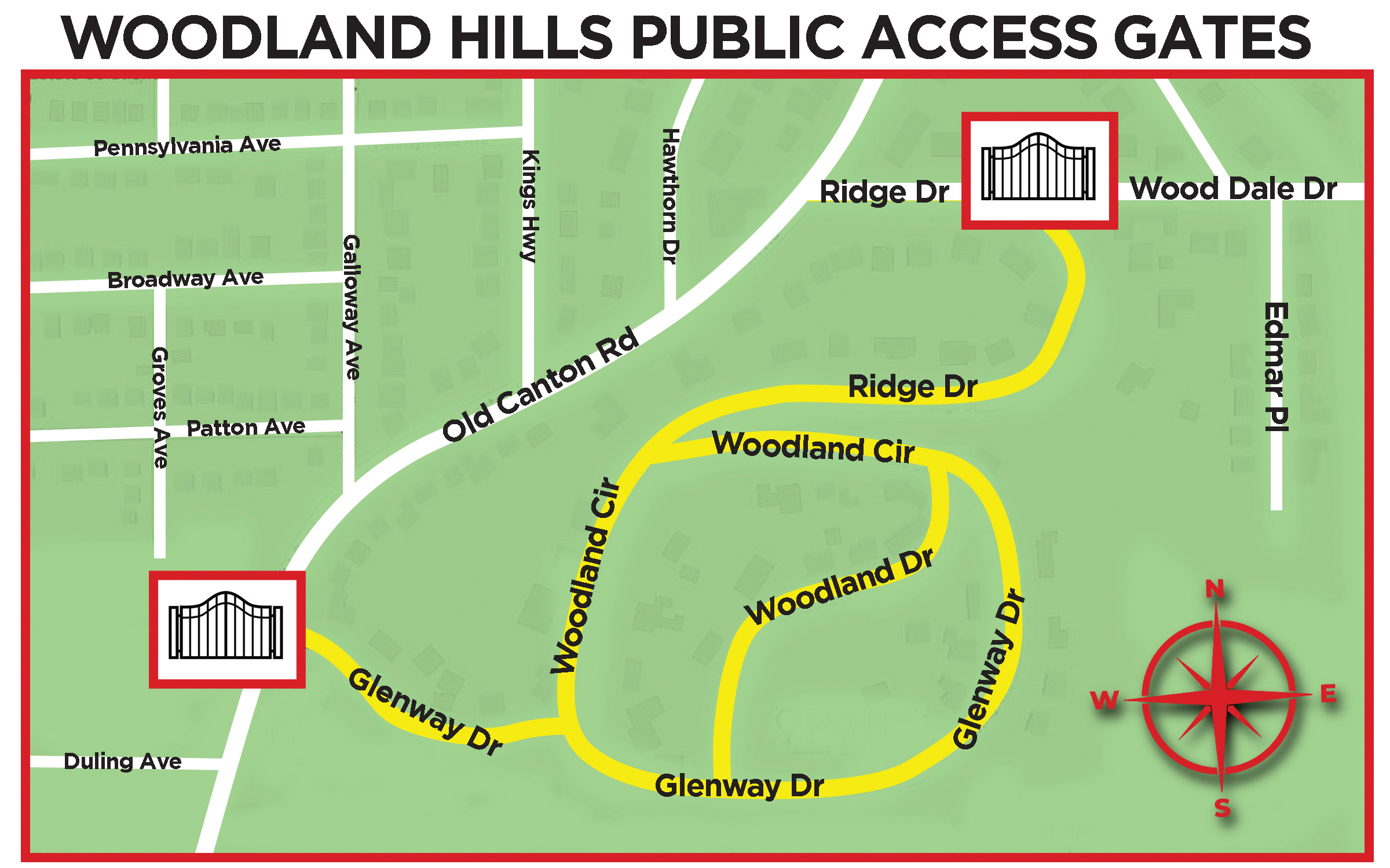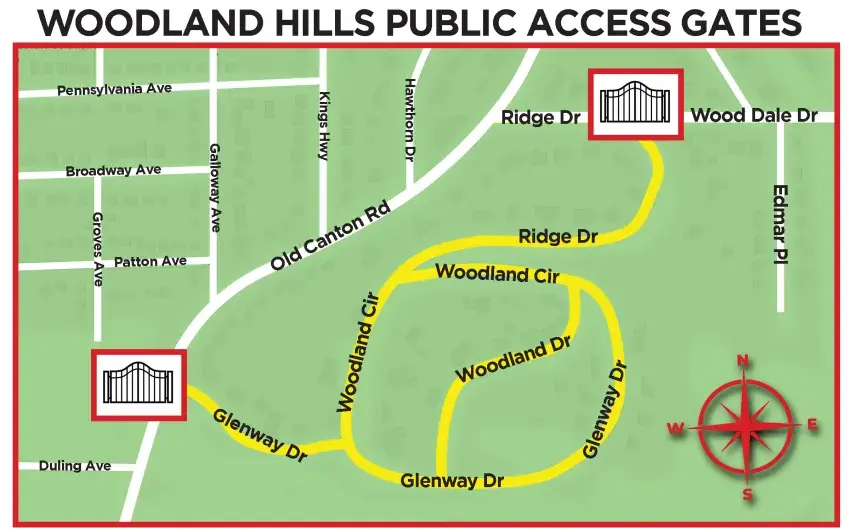 Woodland Hills’ application includes installing two public access gates, one at Glenway Drive and Old Canton Road, and the other where Ridge Drive and Wood Dale Drive merge.