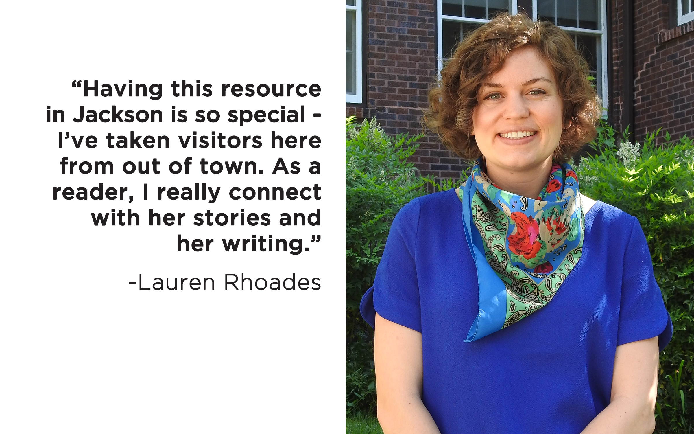 “I’ve always loved literature, and love to read and love to write. Having this resource in Jackson is so special – I’ve taken visitors here from out of town. As a reader, I really connect with her stories and her writing. One story that initially drew me here is Where is the Voice Coming From?,” just because it’s relevant to our state.”