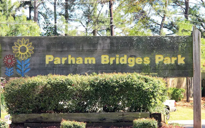 Parham Bridges is bordered by Old Canton to the north and west and Ridgewood Road to the east. A second entrance to the park is located along Ridgewood next to the playground.