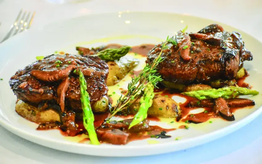 Spoon sauce over beef and serve with your favorite potato and asparagus.