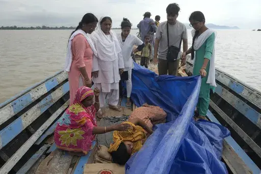 MORIGAON, India (AP) — A blue tarp covered a mother and her newborn daughter from the incessant rain on their boat journey. Jahanara Khatoon, 25, had just given birth on the boat on their way to a healthcare center, surrounded by the raging floodwaters of the Brahmaputra River.