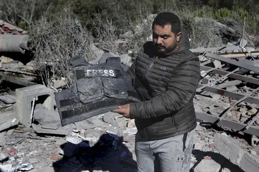 BEIRUT (AP) — An early morning Israeli airstrike killed three journalists as they slept at a guesthouse in southeast Lebanon on Friday, one of the deadliest attacks on the media since hostilities broke out across the border a year ago.