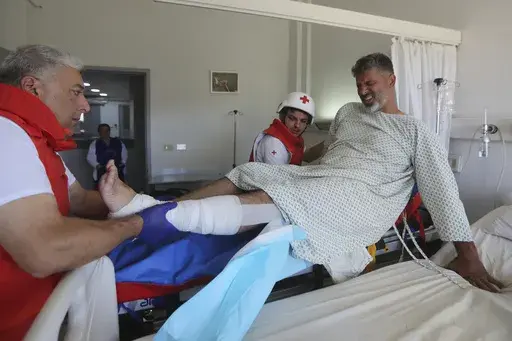 He said two missiles hit the chalet next door, although he didn’t hear them. He spoke from his hospital bed where he is being treated for thigh injuries.