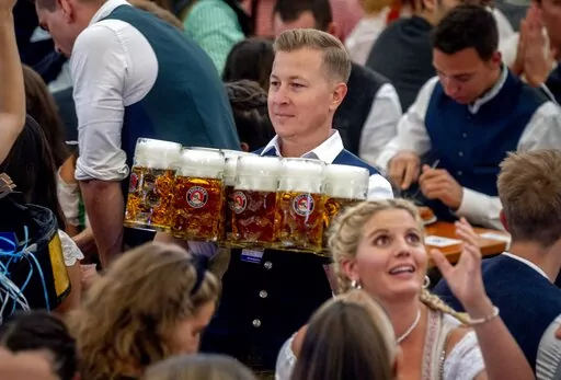 MUNICH (AP) — The beer is flowing at Munich's world-famous Oktoberfest for the first time since 2019.