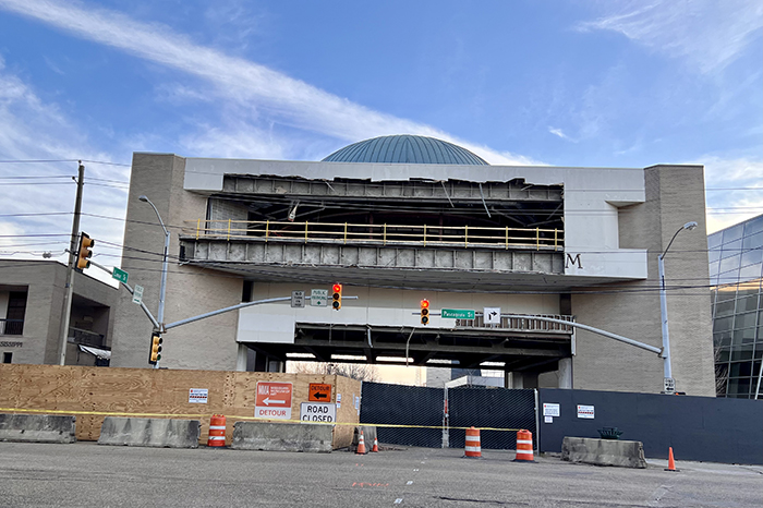 “The project is in the demolition stage,” Williams said. “All of the canopy that sat above the entrance to the Arts Center on Lamar Street has been demolished.”