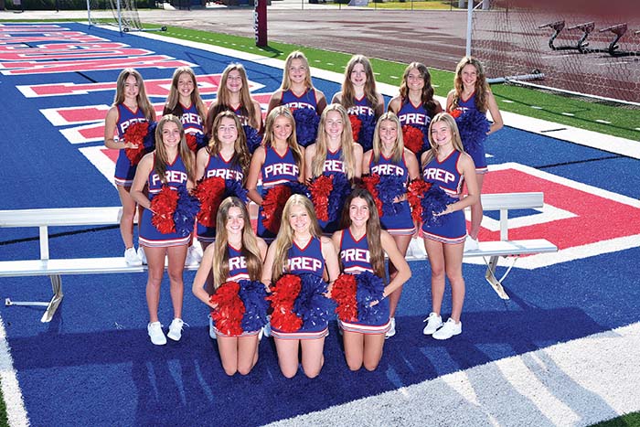 The 2023 Jackson Prep junior high cheer team includes (from left, back) Tinsley Ferris, Eliza Christopher, Elizabeth Mann, Elise Hawkins, Caroline McPhillips, Kaedence Chiasson, Jane Kate Dykes; (middle) Mary Hollis Maddux, Claire Katsaboulas, Mary Thomas Decker, Lily Grubbs, MJ Rhoads, Hayden Benton; (front) Raney Hogan, Carlyle Davis, and Reese Russ.