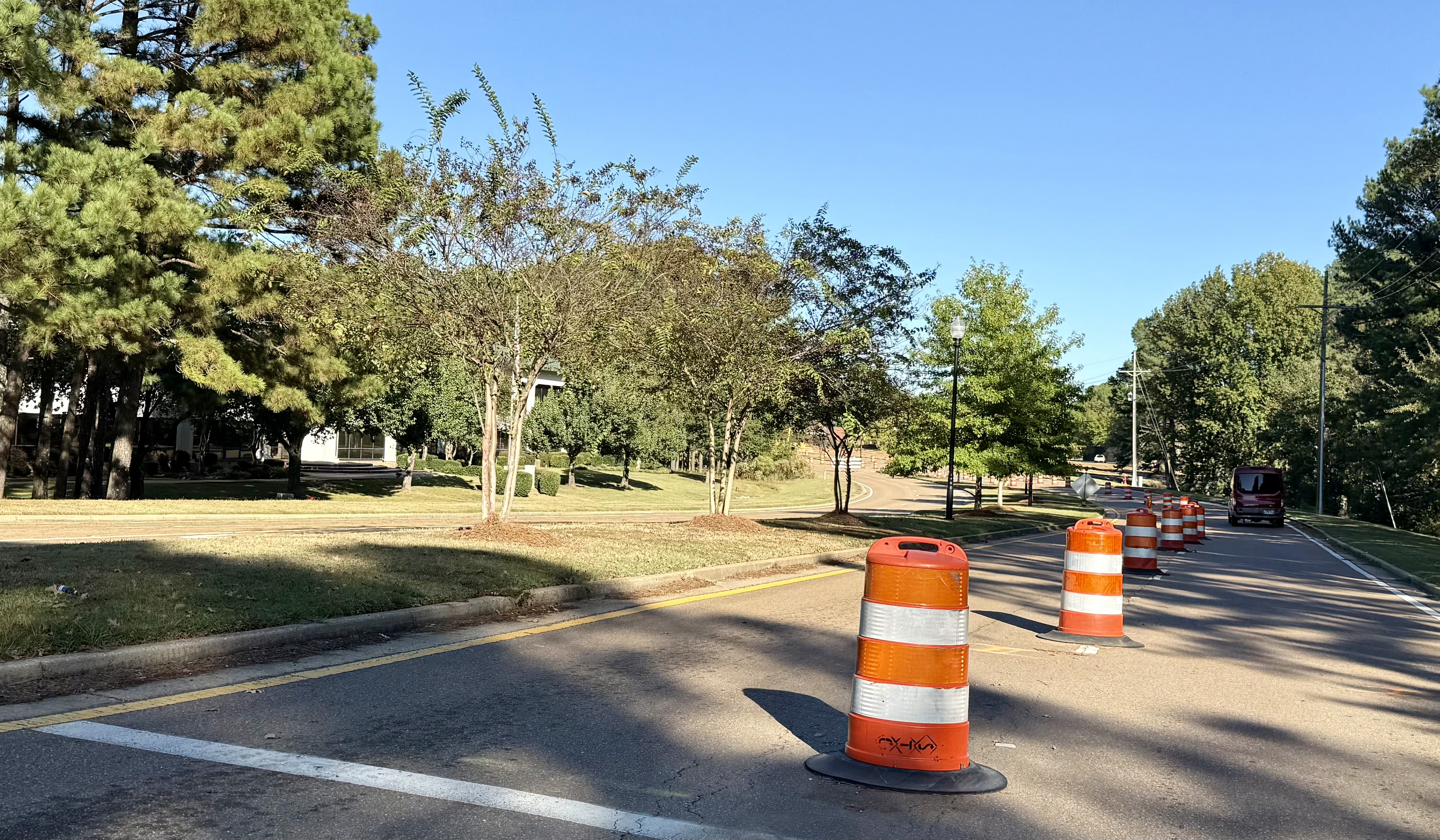 The project involves replacing curbs, asphalt, striping and lighting. Fresh grass and trees will be planted in the median.