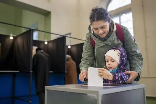 About 2.4 million people are eligible to elect 141 members of the parliament, or Seimas, for a four-year term in two rounds. On Sunday, 70 lawmakers will be elected by party lists, joined by those in single-mandate constituencies who manage to win more than 50% of votes. The runoff is Oct. 27, when the majority of single-member constituencies will vote to choose between the two leading candidates.