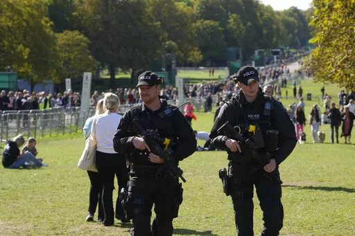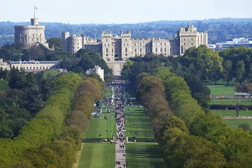 Police officers were dotted along the route along the Long Walk, a 3-mile (5-kilometer) avenue where a walking funeral procession will be held before the queen is laid to rest in St. George’s Chapel.