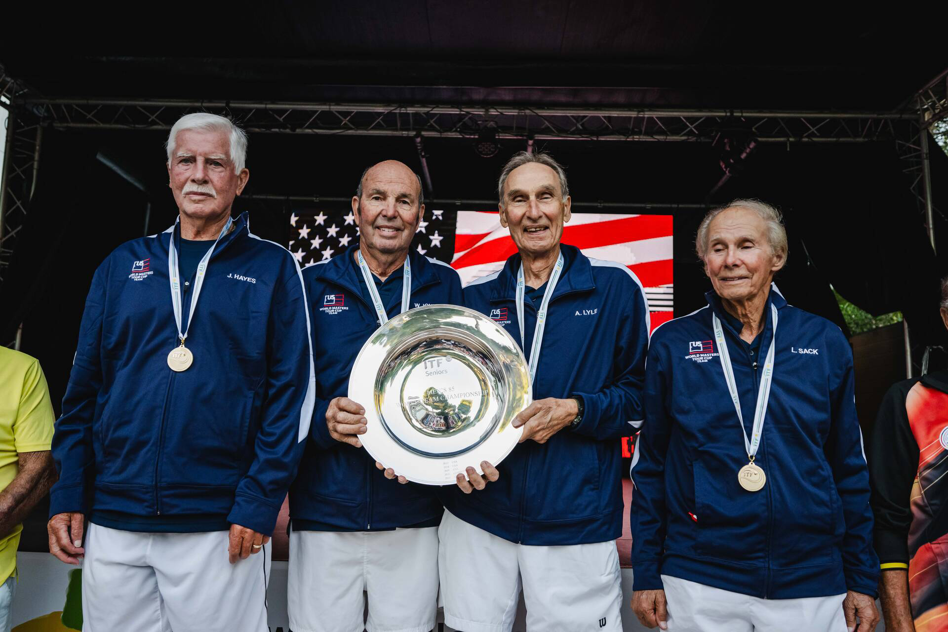 Last week, tennis players from around the country were in Mallorca, Spain representing the United States at the International Tennis Federation (ITF) Super-Seniors World Team Championships. Lyle and his team won the Lorne Main Cup in the Men’s 85 & Over category, where they played in a round-robin tournament with various countries. The top American players representing the U.S. are all over the age of 65 in their version of the Davis Cup and Billie Jean King Cup competitions.