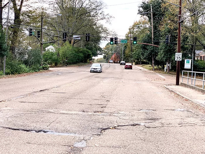 Meadowbrook between Old Canton Road and North State is riddled with potholes and utility cuts, and motorists often must swerve to miss running into the worst crevasses.