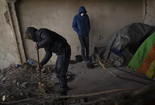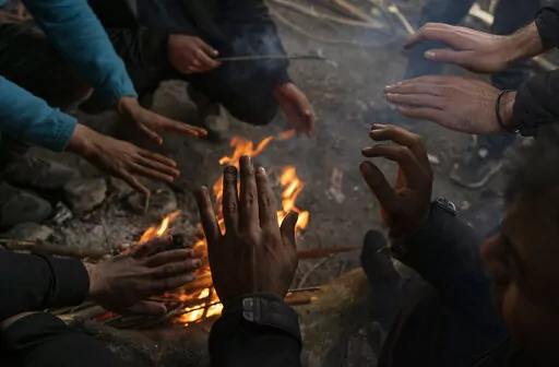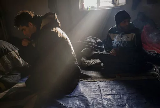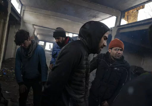 MAJDAN, Serbia (AP) — A group of migrants huddles beside a small, smoky fire inside an abandoned building in northern Serbia, the last moments of warmth before they set out into the driving snow toward the razor wire, cameras and sensors of Hungary's electrified border fence.