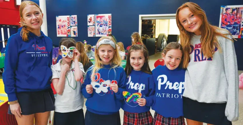 Jackson Prep Upper School French I class had an amazing time celebrating Mardi Gras with grade three students. From designing Mardi Gras masks to enjoying King Cake, the festivities were full of French culture. Participating were (from left) Charlotte Upchurch, Georgia Brown, Ivey Taylor, Kimber Cash, Olivia Woodall, and Mollie Stansell.