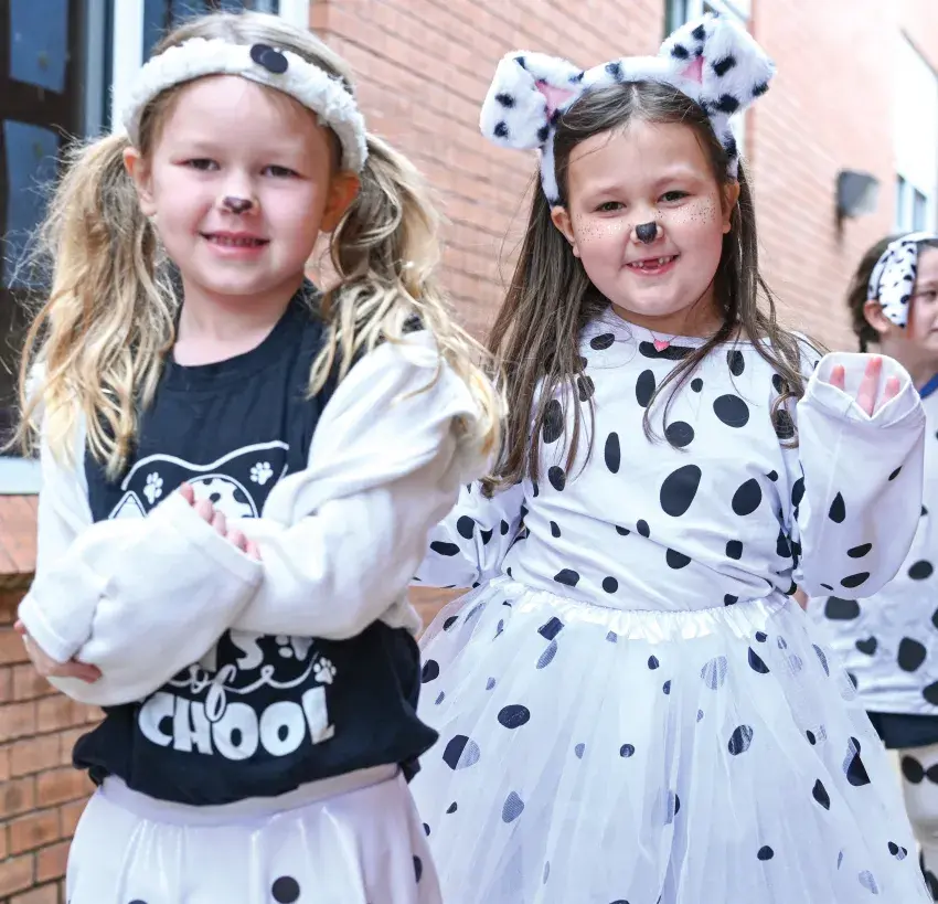 The 101st day of school is a mid-year milestone for Jackson Academy first graders. It begins the preparation for the soon-approaching move to second grade. The day is spent learning and enjoying Dalmatian-style treats to eat, crafts to create, and games to play. Having fun on the day were (from left) Gwen Taylor and Lane Warren.