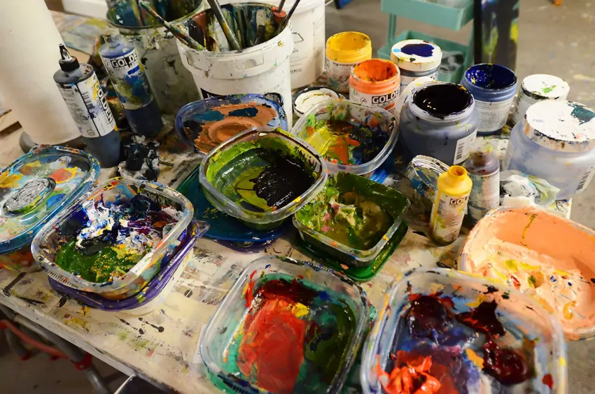 A palette knife replaces the gloved finger, adding a swoosh of another color.