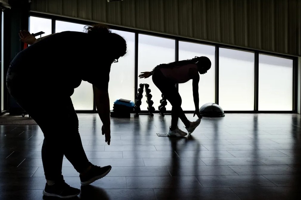 Personal trainer Myesha Stovall, right, and Carolsue Billingsley finish a workout session at the Delta Wellness Center in Leland, Miss., on Thursday, June 6, 2024. Credit: Eric Shelton/Mississippi Today