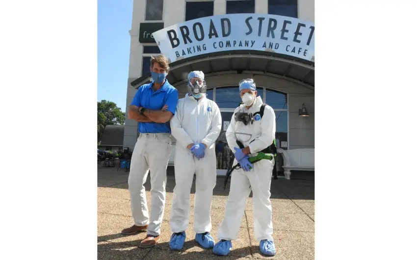 Outfitted in white hazmat suits and armed with electro-static backpack sprayers, Ted Dinkins and Bob Crisler looked more the part of Dan Aykroyd or Bill Murray in Ghostbusters.
