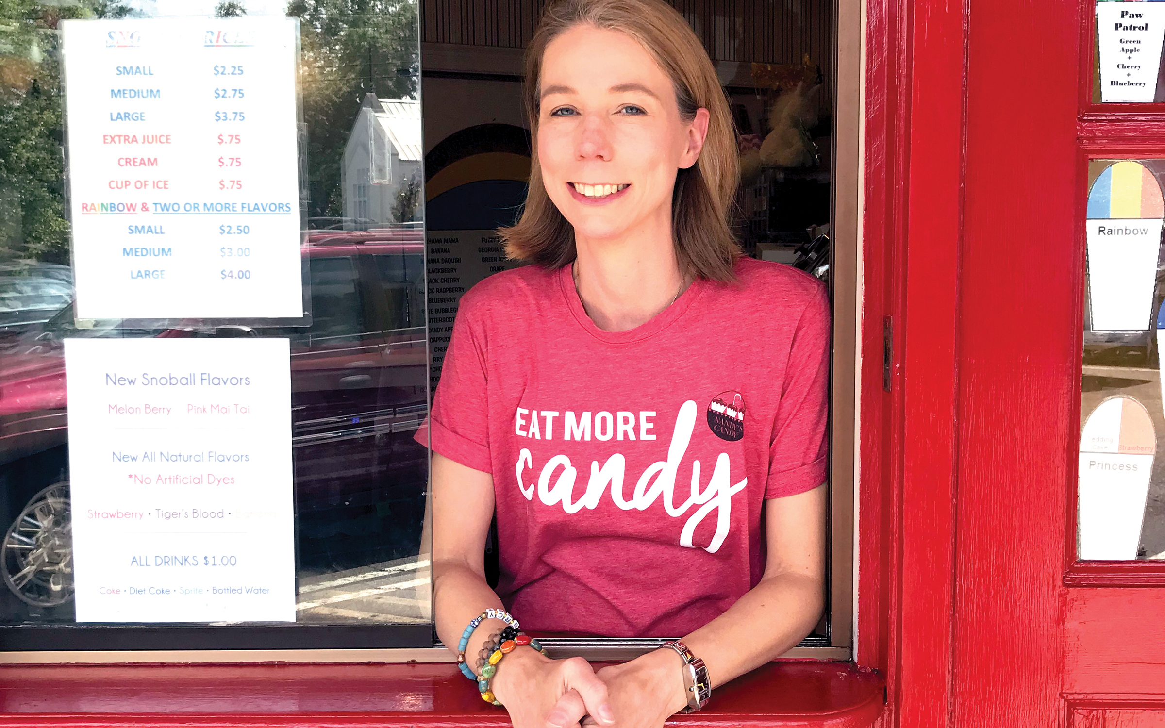 The candy store has been located in Maywood Mart for the past 22 years, featuring outdoor seating, a window where guests can order snoballs during the summer months, several shelves of their own unique, handmade candies and more.
