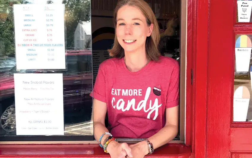 At night, she switches her candy-making apron for her artist apron to relax. She has two sons: Parker, 12, and Charlie, 9. She is dyslexic. She thinks of it as her super power. She loves to travel with her family, especially to North Carolina. She and her son created the Olaf snoball flavor, which is marshmallow and blue cotton candy. It’s her favorite.
