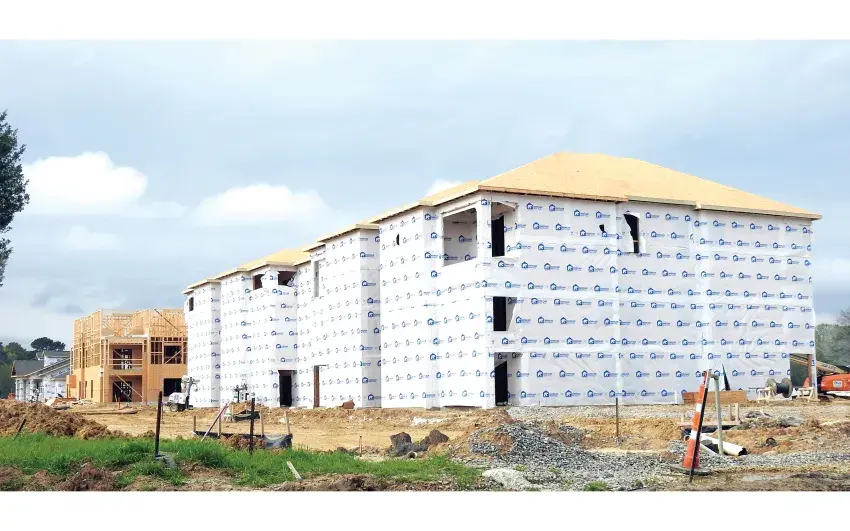 The first two buildings are already up, while crews were expected to begin framing the third building this week.