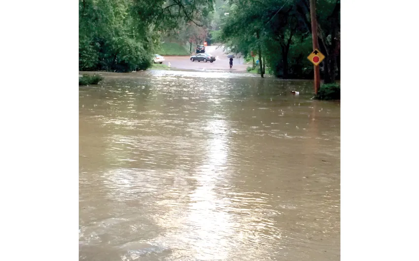 According to the National Weather Service more than 99 percent of the drainage basin is developed, with 41.58 percent of it being covered with impervious materials, such as concrete and other building materials.