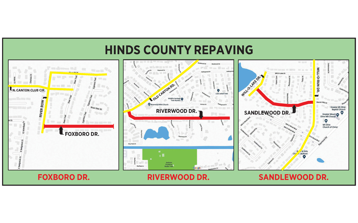 To find out more about the county’s street repaving program or to have your street added to the list, e-mail Graham at rgraham@co.hinds.ms.us.
