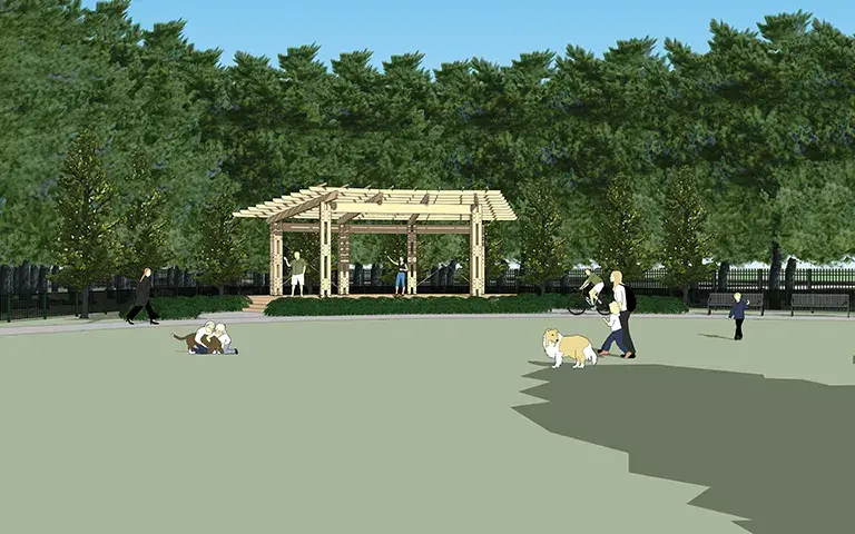 Renderings were displayed at Greater Belhaven’s annual party. The structure includes five columns and a roof resembling a pergola.