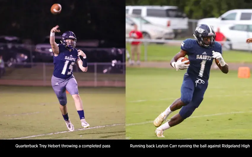 The Saints are led by first-year quarterback Trey Hebert. The junior began the season as kicker but had to take over the offense after senior Aaron Cooper went down in week five with a season-ending injury.