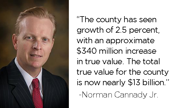“The county has seen growth of 2.5 percent, with an approximate $340 million increase in true value,” Cannady said. “The total true value for the county is now nearly $13 billion.”