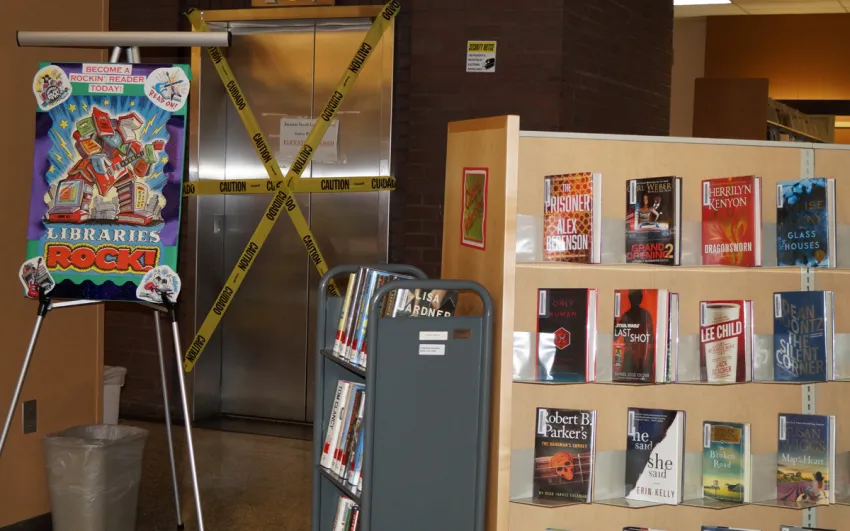 “The only way we can get the books from one floor to the other is to put them in a van, drive them to the loading dock and bring them in. We can no longer use the elevator to transfer the books,” she said. “This is a real problem.