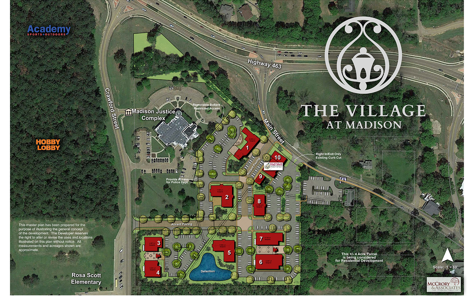 The Village will be an all brick development that Castleberry said will provide the perfect transition between the large stores on Crawford and the historic downtown of Madison.