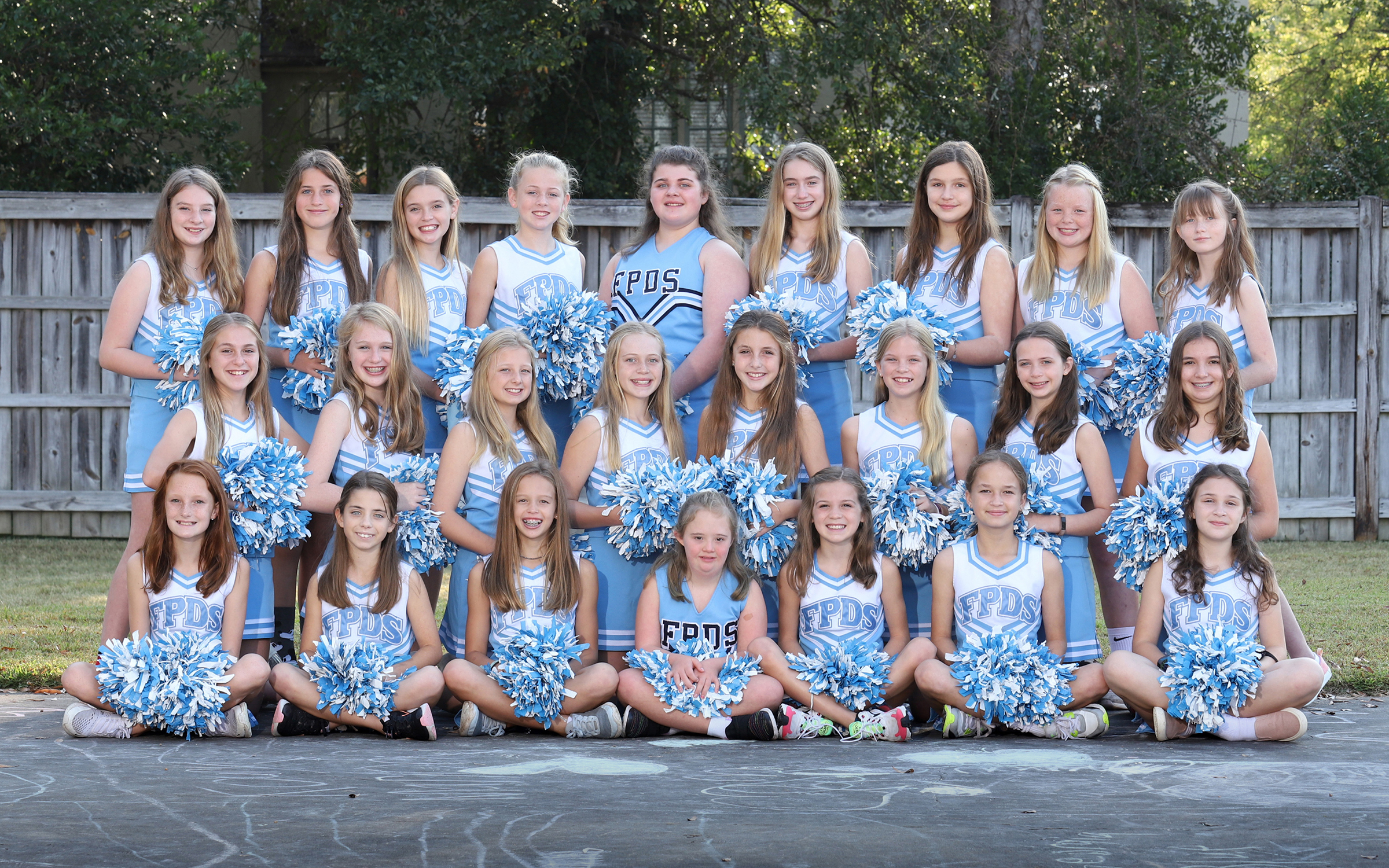 First Presbyterian Day School sixth grade Crusader cheerleaders for the 2020 season included (from left, back) Addison Dungey, Aili Leggett, Raney Hogan, Lily Grubbs, Caroline Watts, Allie Shay, Sophia French, Maggie Bailey, Ava Claire Jackson; (middle) Hazel Ginn, Carlyle Davis, Aubrey Bailey, Hensley Burns, Reese Russ, Cate Bailey, Catherine Hawkins, Emily Head; (front) Mollie Stansell, Blair Winscott, Elizabeth Rich, Leighton Myrick, Ann Harper Mardis, Anna Impastato, and Grace Hoeniges.